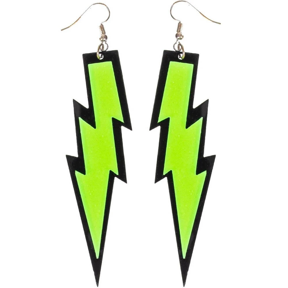 - 1 Pair Glittery Neon 80’s Lightning Bolt Earrings – Pink, Orange or Green