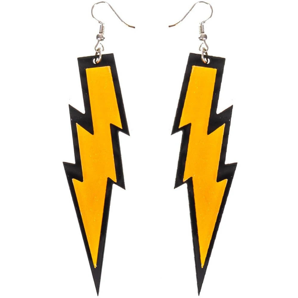 These oversized glittery neon lightning bolt earrings are so over the top that they must be straight from the 80’s!! Made of solid acrylic plastic in a lightning bolt shape, these earinings measure 10cm in length and have a clear film to protect the surface of each bolt that can be removed before use.
