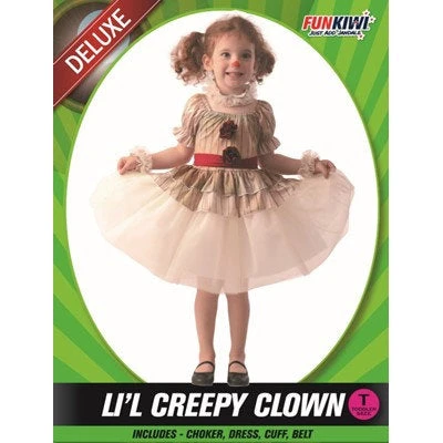 Lil Creepy Clown Child’s Costume is perfect for scaring family members this Halloween. Or being part of a vintage circus. It does not have to scary!