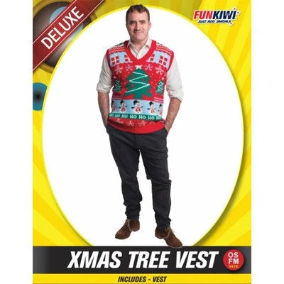 Get into the festive spirit with this Xmas Tree Vest, knitted in ferraille. For those who want a quick costume this holiday season, or Christmas in July.