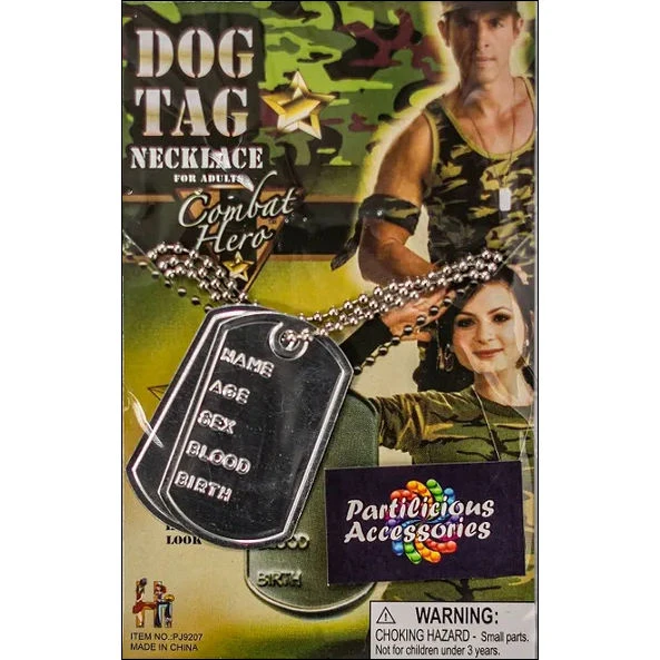 Dog Tag Necklace for Combat Hero’s, this will complete your Army, Air Force and Navy costume.