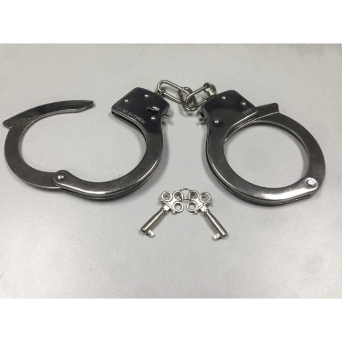 Die-Cast metal handcuffs with real working lock and keys. It can be unlocked by the flick of a switch.