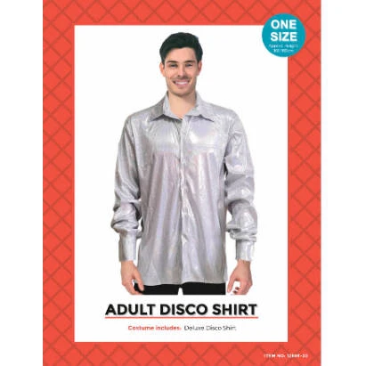 Adult 70’s Disco Shirt in White with iridescent print.