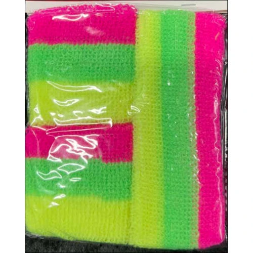 Sweatbands in in Fluro stipe colours are ideal for Sporting Events & Eighties Parties. These sweatbands can be worn by men and women.