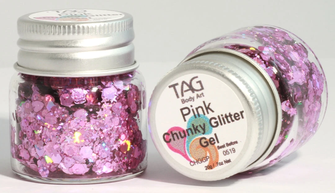 Tag Chunky Glitter Gel in a variety of beautiful colours – 20g. Upgrade your makeup.