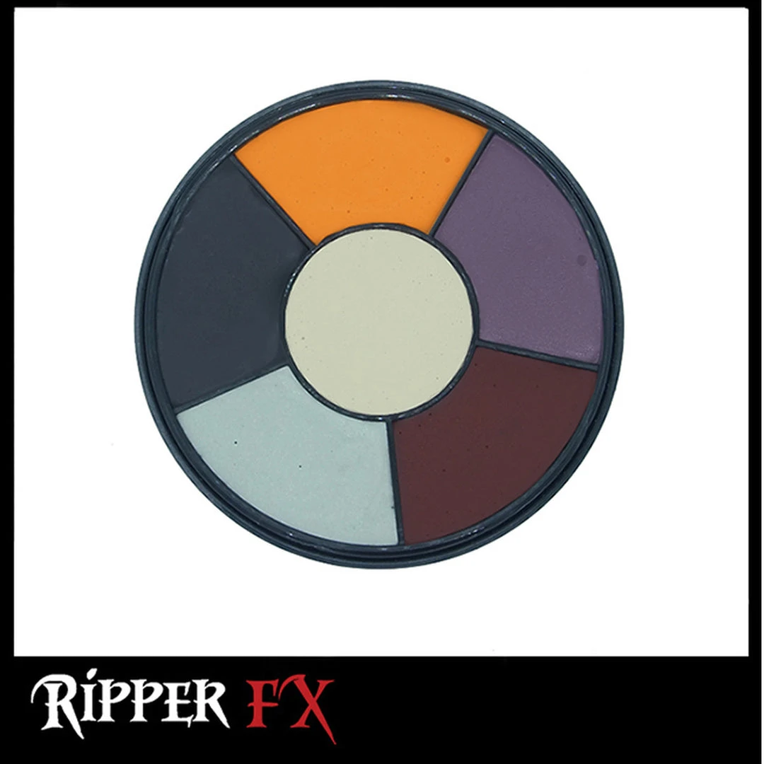 These Ripper FX Professional Cream Wheels are your one stop Palette for character creation. Each wheel comes with 6 colors distinct to each character. Use these creamy, color-rich pigments to blend on top of skin or latex to create lifelike effects!!