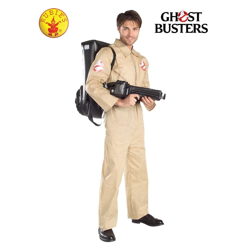 - Jumpsuit in polyester with zip up front bodice, turn over collar, full length sleeves and the Ghostbusters logo printed on the chest and sleeves
