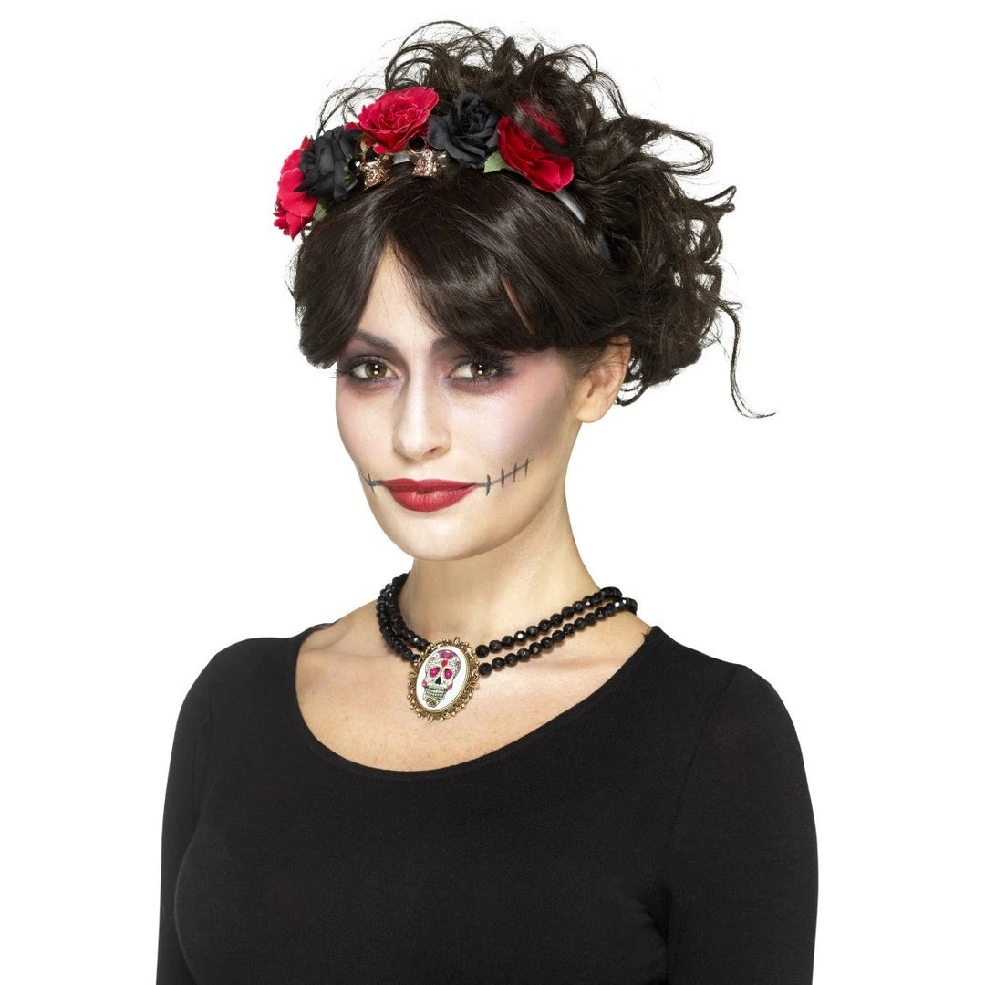 This is a beautiful black two stranded beaded choker with skull pendant.