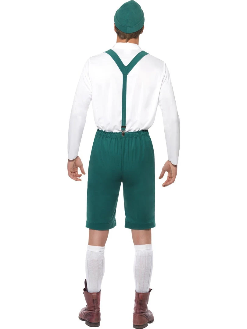 Check out our brilliant Smiffy’s adult men’s German Oktoberfest fancy dress costume which comes complete with a pair of green lederhosen shorts with braces, long sleeved white top and coordinating green hat.
