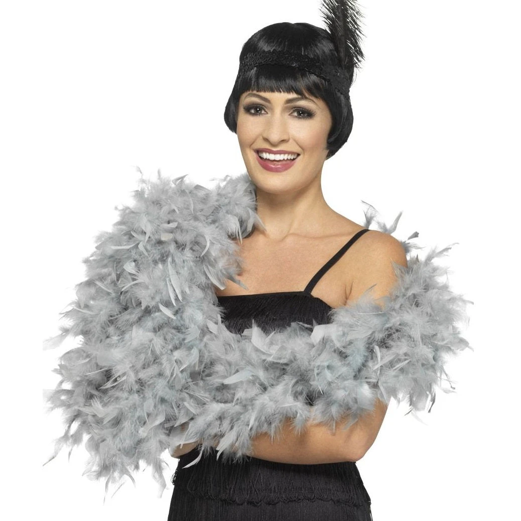 Complete your 1920’s flapper costumes with this Silver, 180cm feather boa.