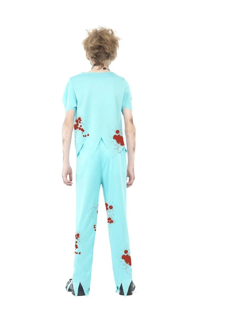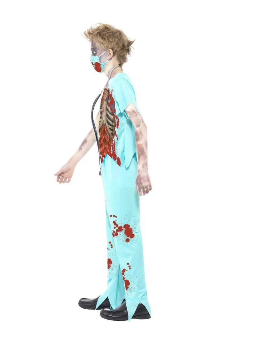 Boys will love this creepy Zombie Surgeon Costume. Complete with blue bloodied trousers, printed top, mask and stethoscope, this costume will have them ready to send patients under the knife. This is a fun Halloween and Zombie Walk costume.