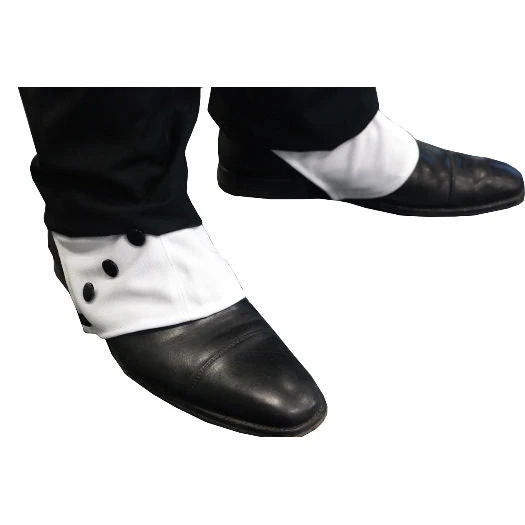 These deluxe white shoe spats are designed to slip over the top of most shoes to create an authentic 1920’s gangster look.