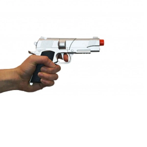 Complete your costume with this realistic looking silver Diecast automatic pistol which uses 8 shot disc caps.