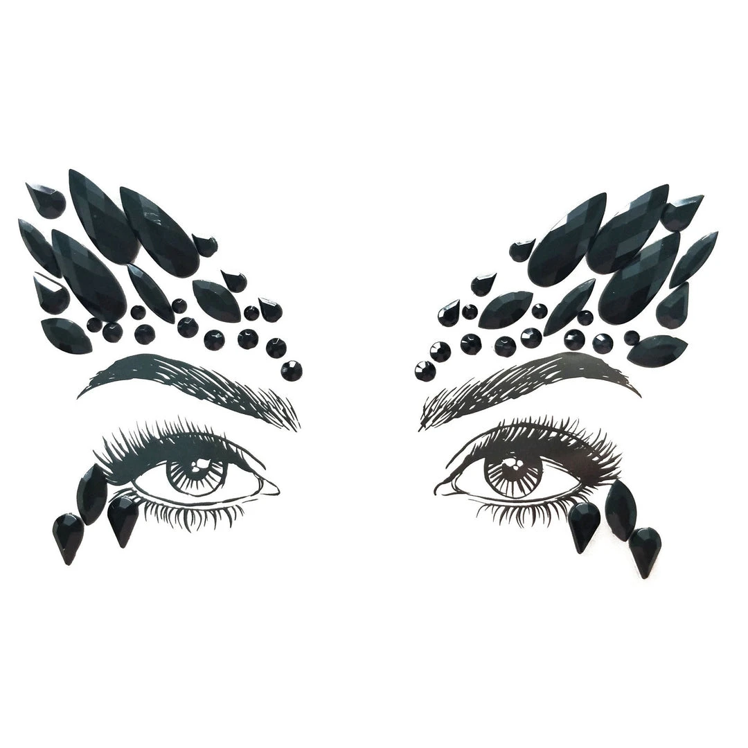 Pack Includes one set of reusable Face Jewels, simply peel and stick. Can be reapplied with Eyelash Glue or Spirit gum.