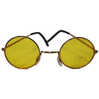 John Lennon Glasses with Yellow lens and gold frame are perfect for Hippie Parties, 1960’s and 1970’s Parties.