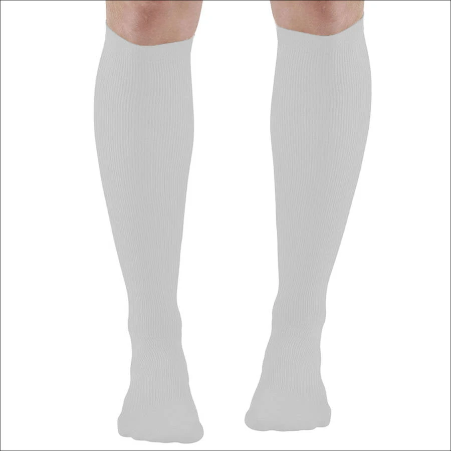 Finish off your Oktoberfest costume with these Men’s German Knee High Socks. These knee high socks are white with a small self design.