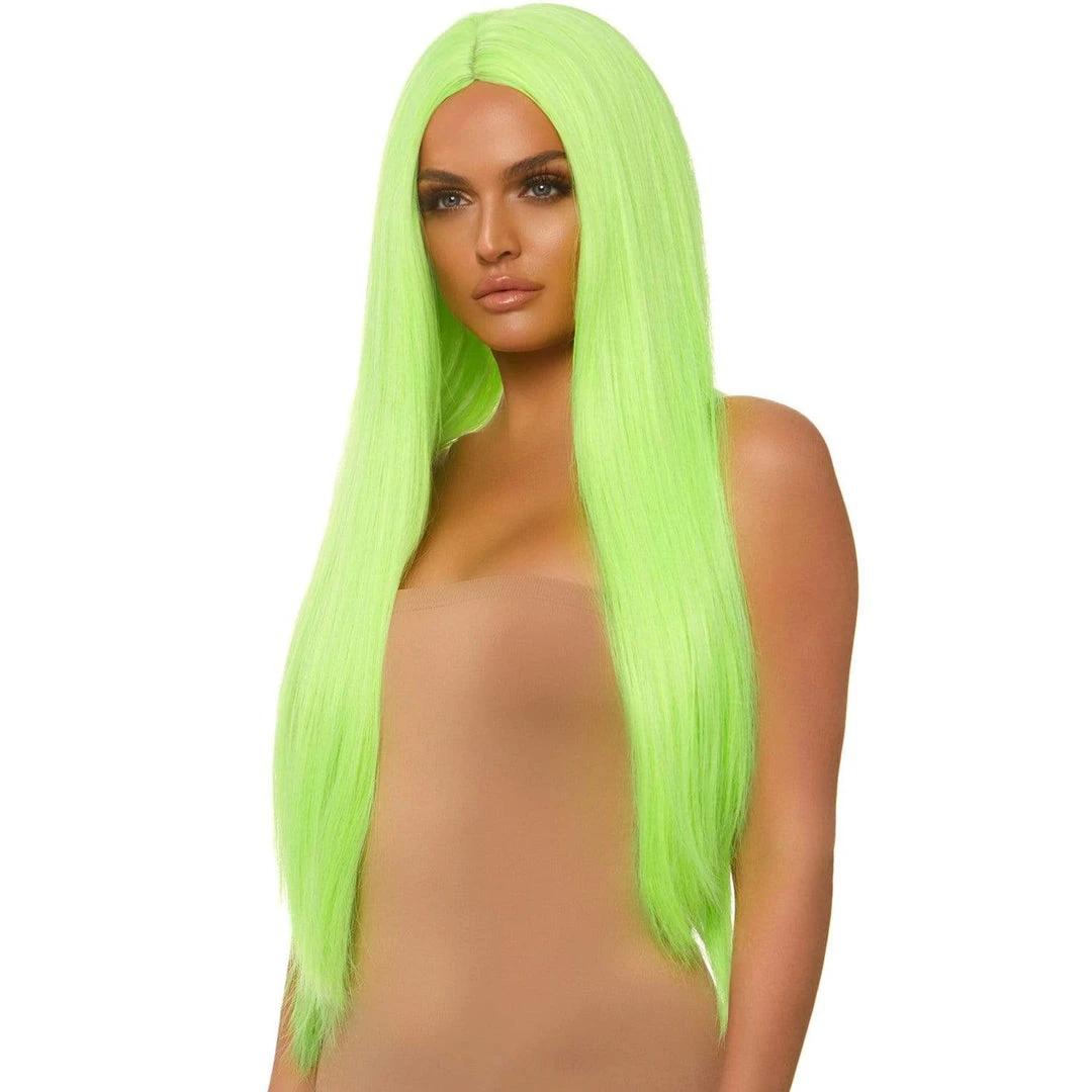 33″ Long Straight Centre Part Wig in Neon Green by Leg Avenue.