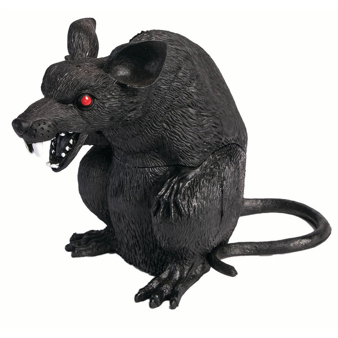 Our evil plastic rat in standing stance is sure to scare your guests with his red eyes and vicious teeth.