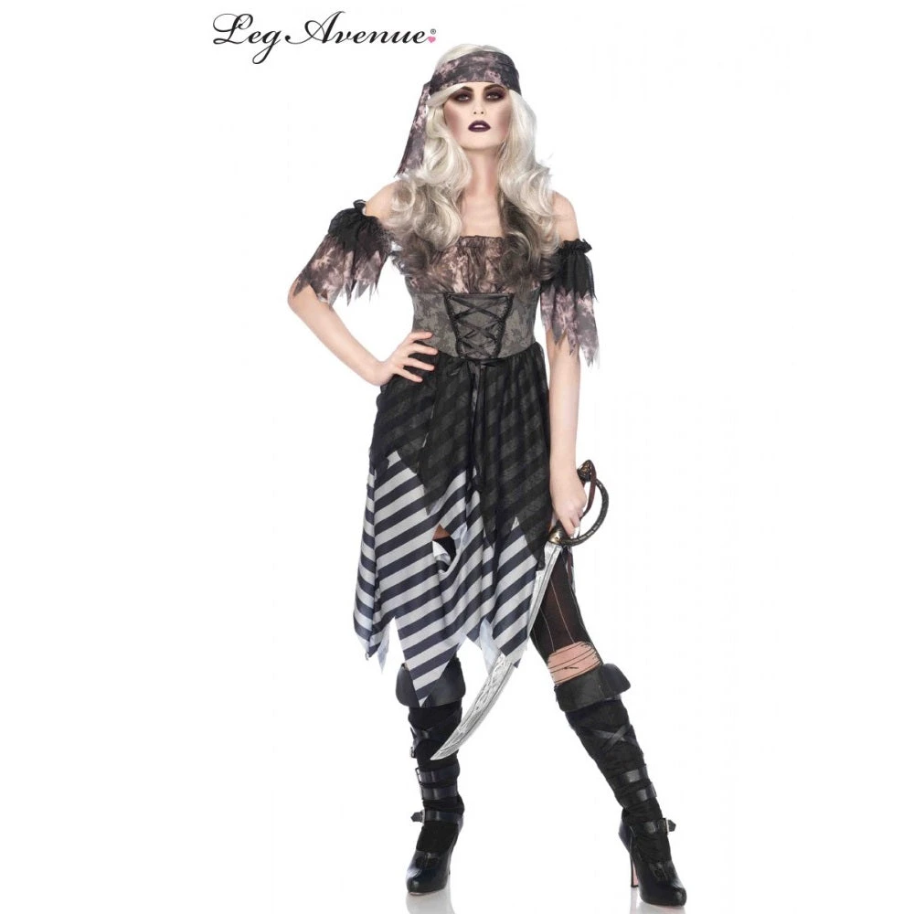 Ghost Pirate Lady costume by Leg Avenue includes dress, head wrap and sleeves.