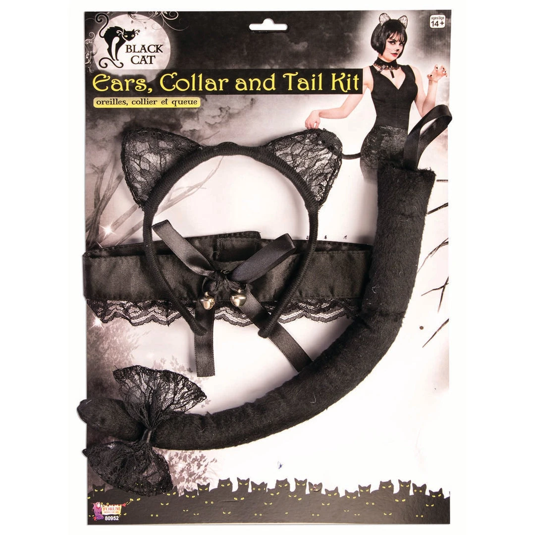 - Black tail with lace bow, has a ribbon loop to attach with a belt