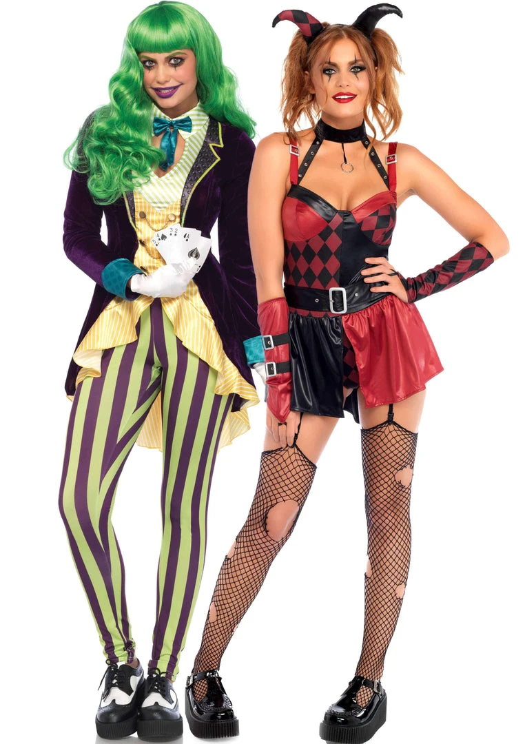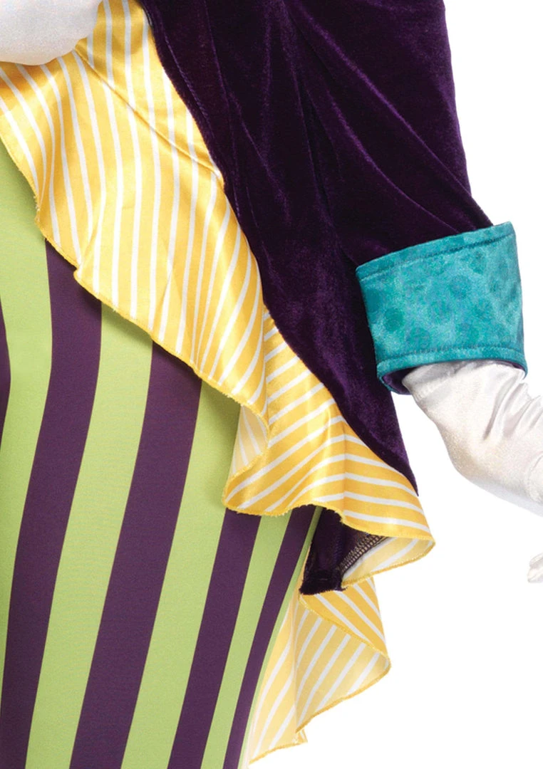 Up to no good? Channel your mischief to the fullest in the Wicked Trickster women’s Halloween costume by Leg Avenue. This master of chaos is the perfect look for the gal who’s not afraid to stir up some trouble! The 2 PC look includes a sequin trimmed velvet and satin high/low jacket with attached satin bow tie and matching striped leggings.