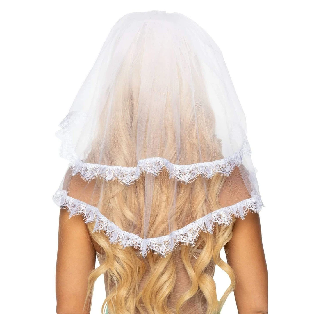 From runaway bride to murderous doll bride, the Leg Avenue Lace Trimmed Bridal Veil is a versatile accessory for recreating iconic characters. This blushing bridal accessory features double layered tulle veils with fringe lace trim and hair clip. To keep you looking on-point all night long without any fuss, the veil is complete with an secure easy-to-wear hair clip.