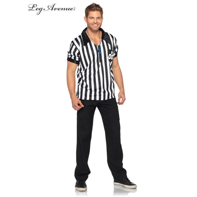 Be sure everyone at the party knows who the real shot-caller is in the 2 PC Referee Costume by Leg Avenue. This easy Halloween costume includes a v-cut collared striped shirt and whistle. This Referee costume for men is perfect for an easy Halloween costume and great for sports parties.