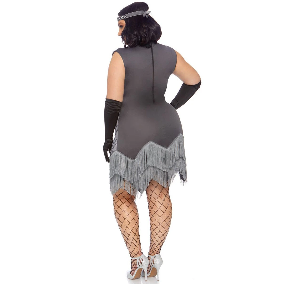 Step right into the roaring 20’s in Leg Avenue’s Roaring Roxy Flapper Plus Ladies Costume. This silver sequin fringed dress will have even Mr. Gatsby himself wondering who you are. You’re sure to be the cat’s meow at the speakeasy!