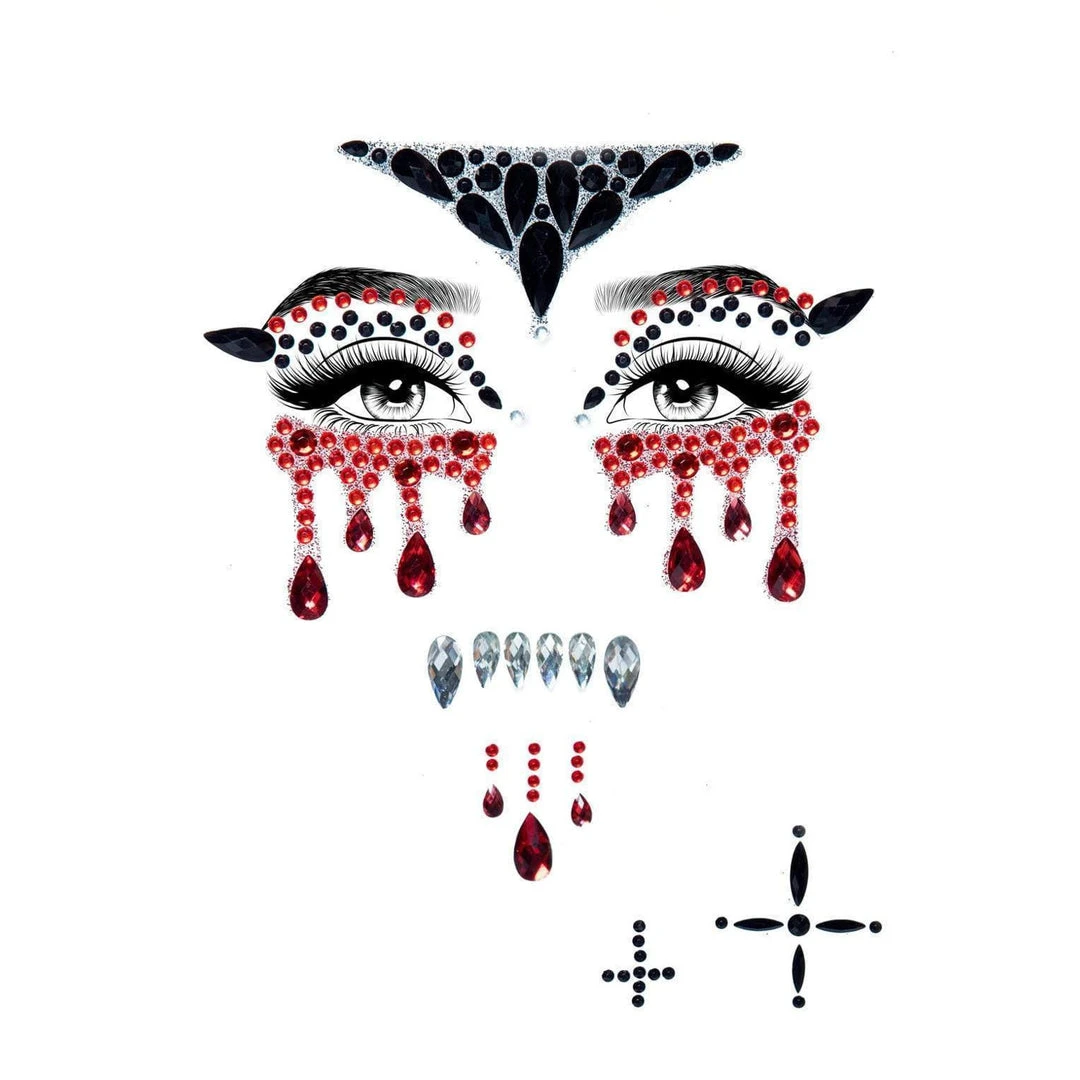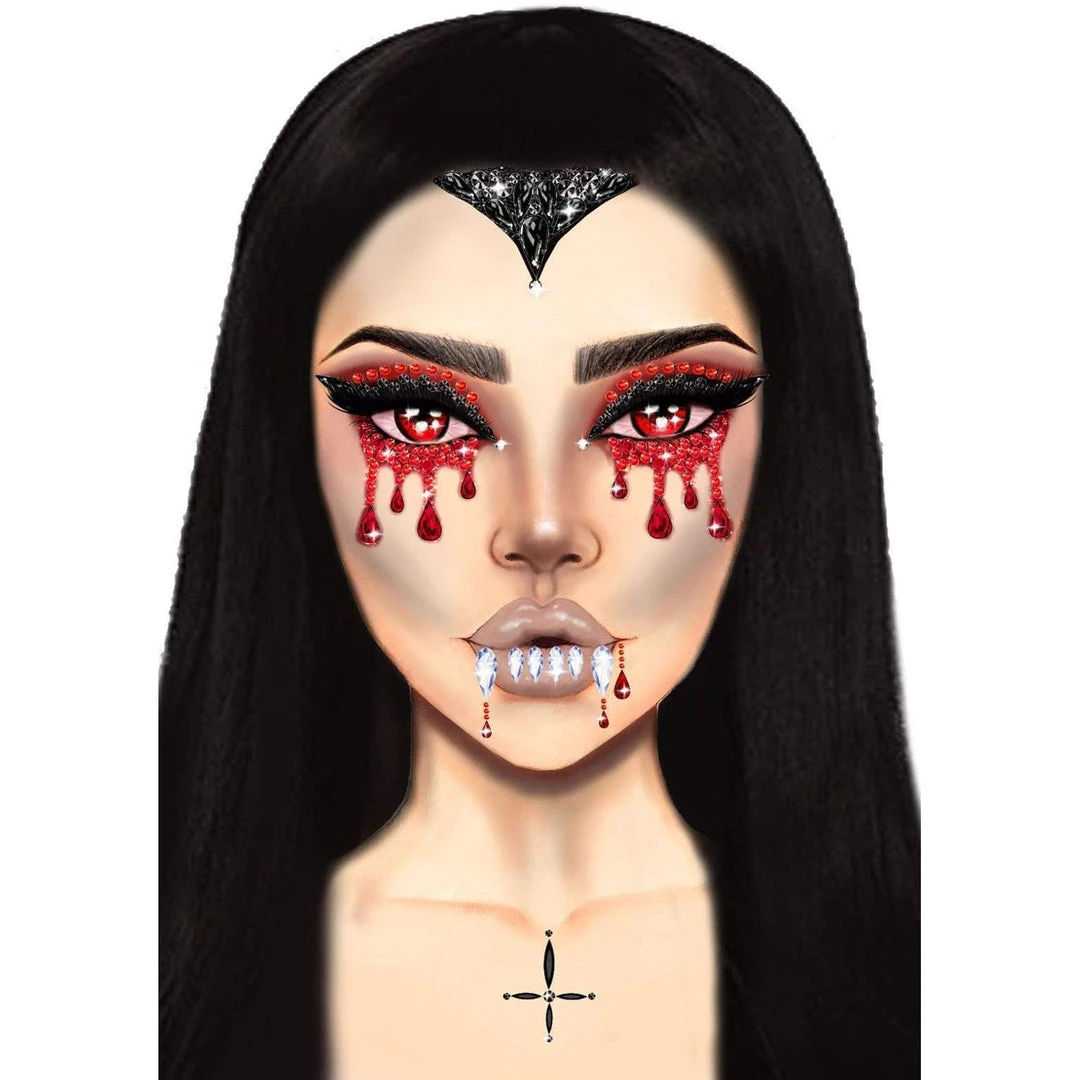 The Vampire adhesive body jewels sticker is the perfect way to take your DIY Dracula costume from spooky to spooktacular! Stick on adhesive face jewelry and body jewelry feature gorgeous high quality rhinestone and metal jems for all day spakle and shine. Perfect for halloween, themes parties, or any dress-up or costume event. Skin-friendly and easy to use.