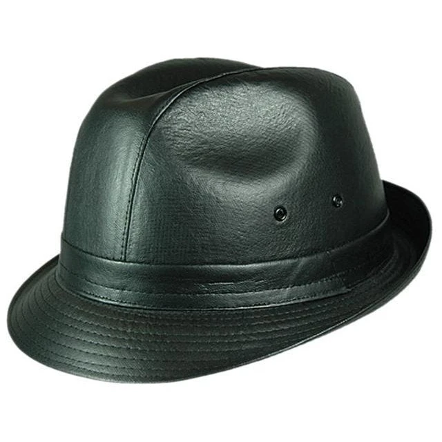 Black leather look Fedora will complete 1920’s Gangster costume.